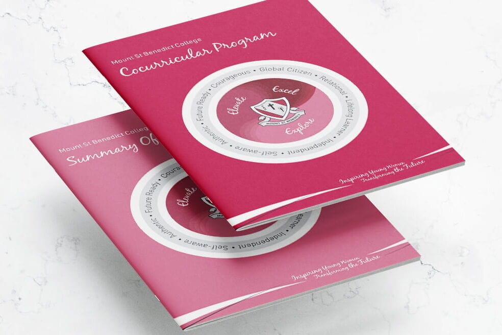 Fresco Creative works on a vast array of printed material with Mount St Benedict College. Building on a brand we’ve proudly nurtured and developed over the years, we’ve created many sophisticated, engaging and easy-to-read print projects that truly reflects the spirit of the College. We recently designed, printed and delivered the Learning Framework publication for Mount St Benedict College as well as managing the design and production of their biannual magazine, Bennies Buzz. In 2025, we refreshed the publication’s look and feel, giving it a contemporary update that beautifully captures the stories, people and events that make the College community so vibrant. Serving as both a communication piece and a marketing tool, Bennies Buzz showcases Mount St Benedict as an inspiring and dynamic place to learn. Our ongoing collaboration has also included creative work for the College’s major musical productions,  The Addams Family and Charlie and the Chocolate Factory… covering everything from programs and outdoor advertising to social media assets. In addition, we have designed materials for key College initiatives such as the 2025–2028 Strategic Plan, Code of Conduct and Private Bus Brochures, supporting the school’s annual Open Day and broader community engagement efforts.